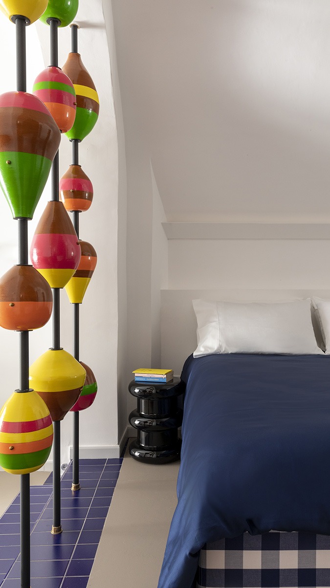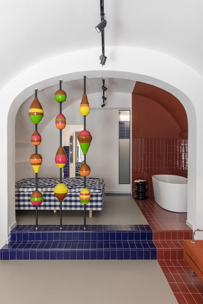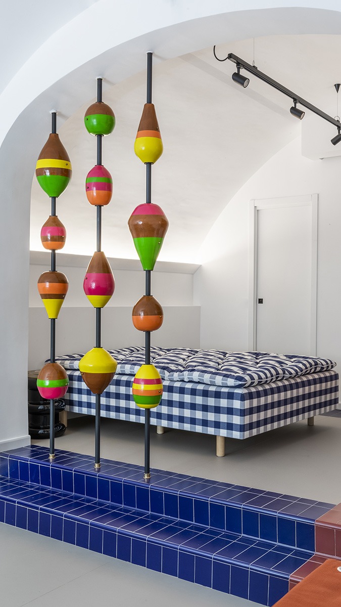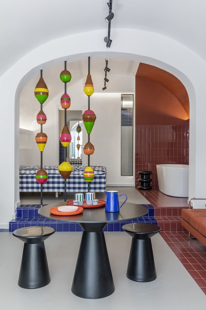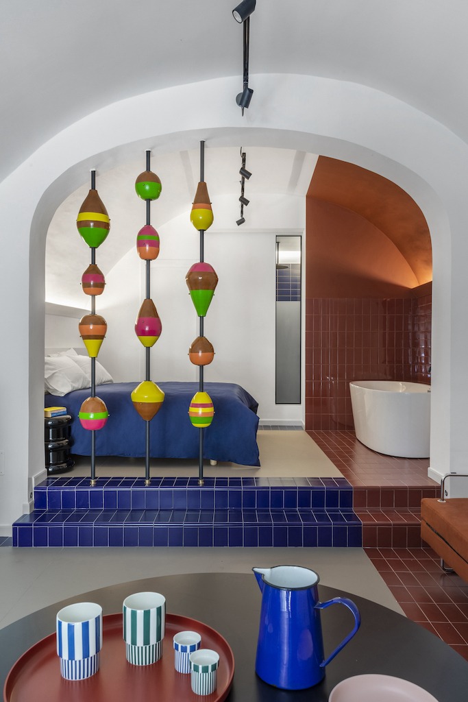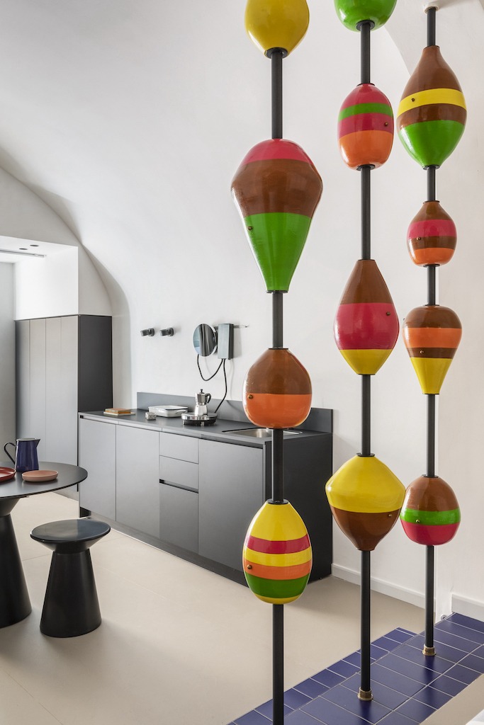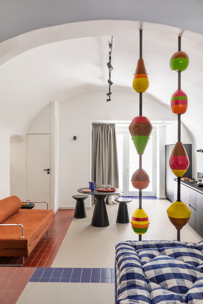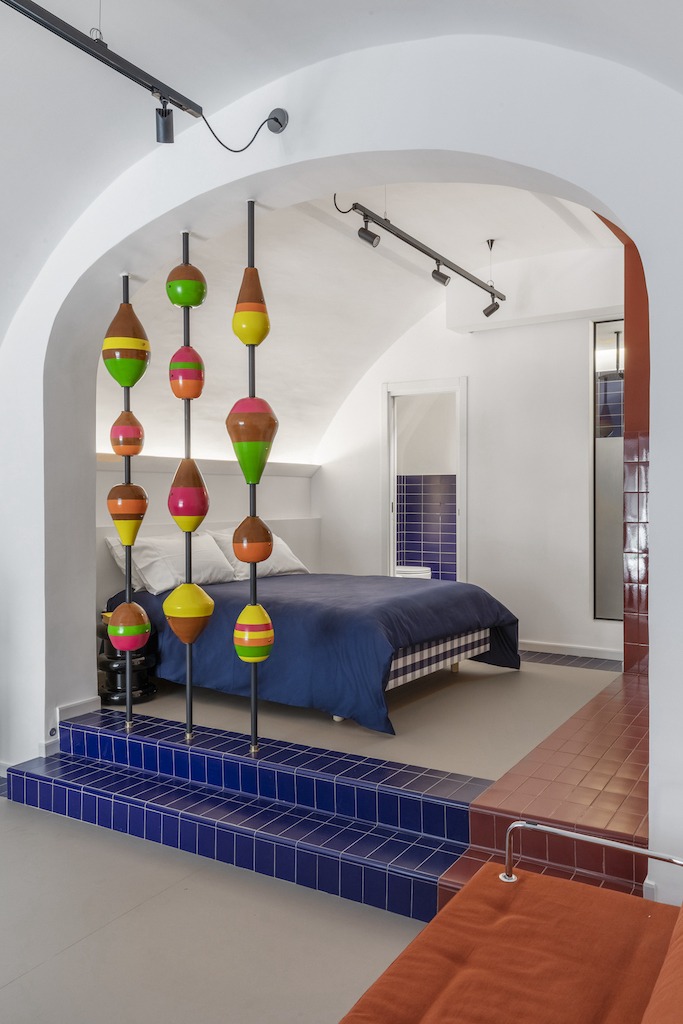 Insieme all’architetto romano Valentina Frasghini, il nudo spazio di 40 metri quadri ha ricevuto una ristrutturazione viscerale che lo ha trasformato nella sua attuale forma multicolore. Ci siamo affidati completamente al gusto e alle iniziative di Valentina, racconta Giuseppe: